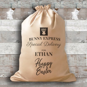 Personalised Bunny Express Special Delivery Easter Gift Sack - Easter Gift - Easter Egg Hunt - Easter Gift Bag - Easter Presents
