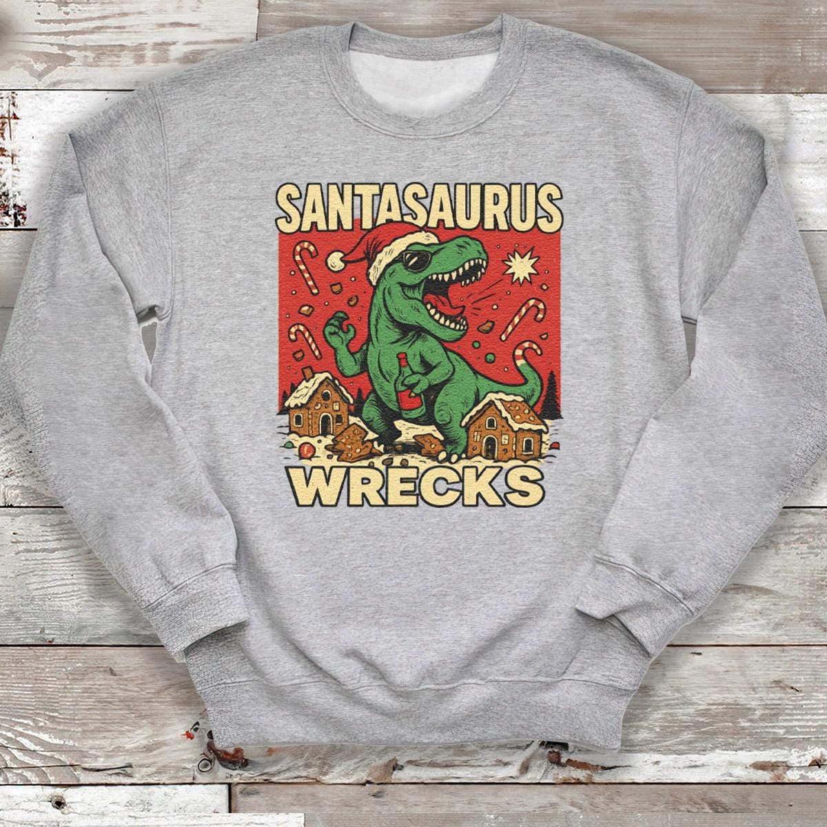Santasaurus Wrecks - Adult & Kids Sizes - Unisex Christmas Jumper, Kids Christmas Jumper, Christmas Sweater, Christmas T-Shirt