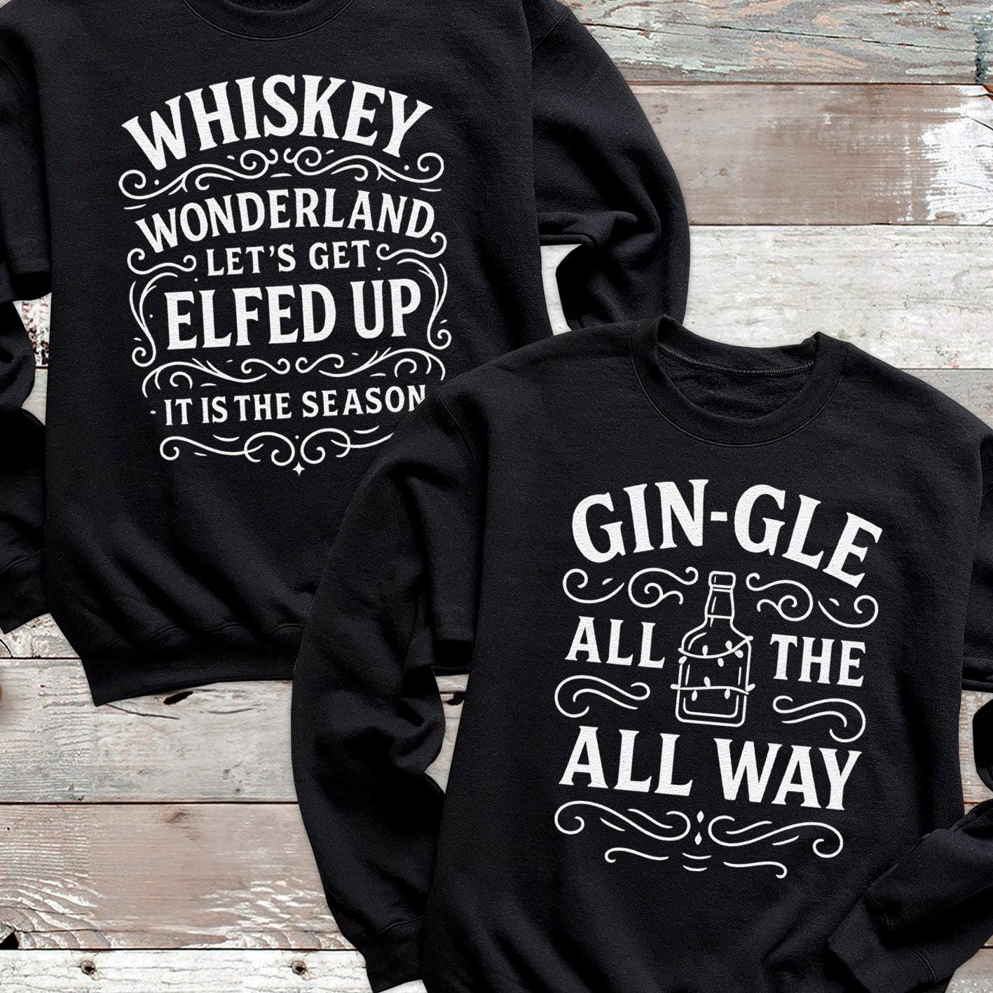 Whiskey Wonderland & Gingle All The Way - Adult Sizes - Unisex Christmas Jumper, Kids Christmas Jumper, Christmas Sweater, Christmas T-Shirt