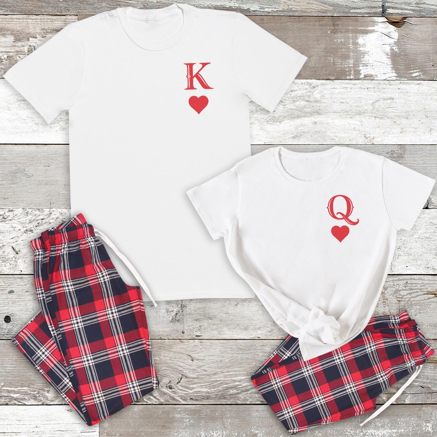 King & Queen Red Badge Matching Pyjamas - Couples Pyjama Set, Couple Matching, Valentines Day Matching, Matching Couples Gift, Anniversary
